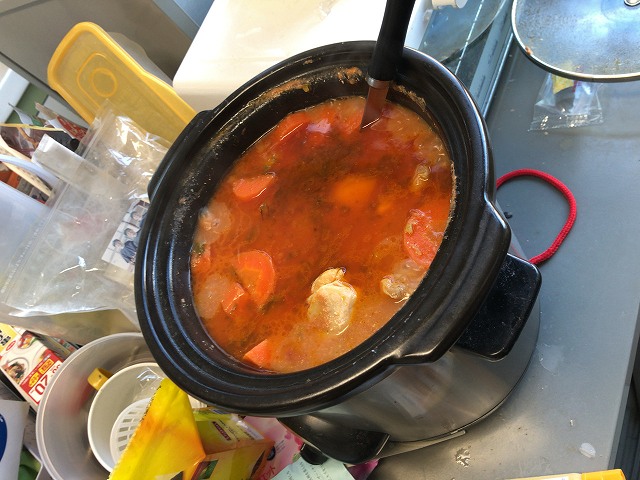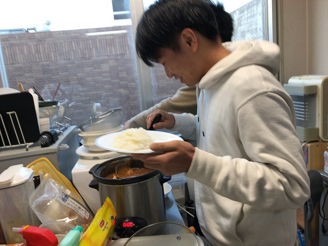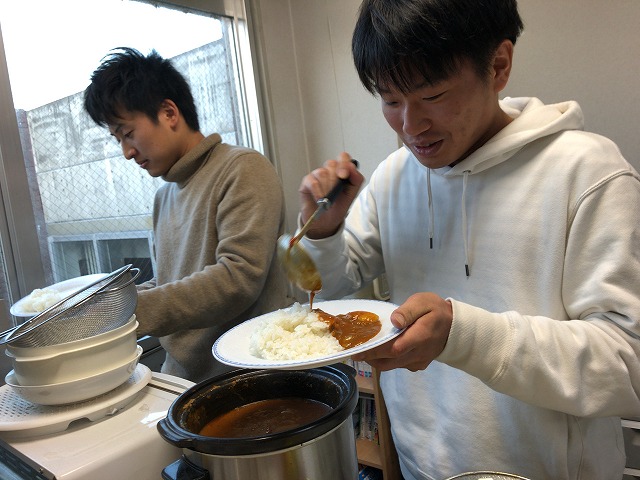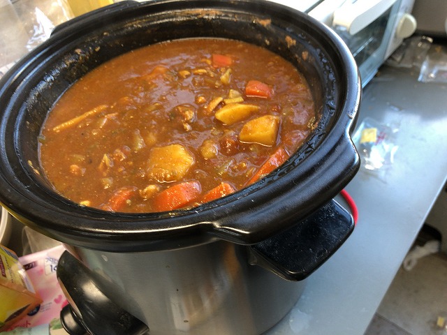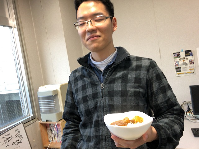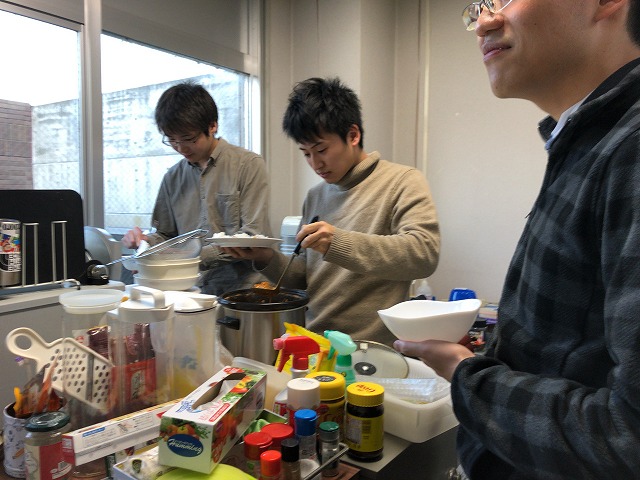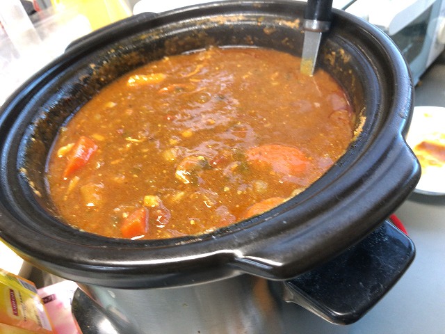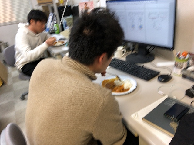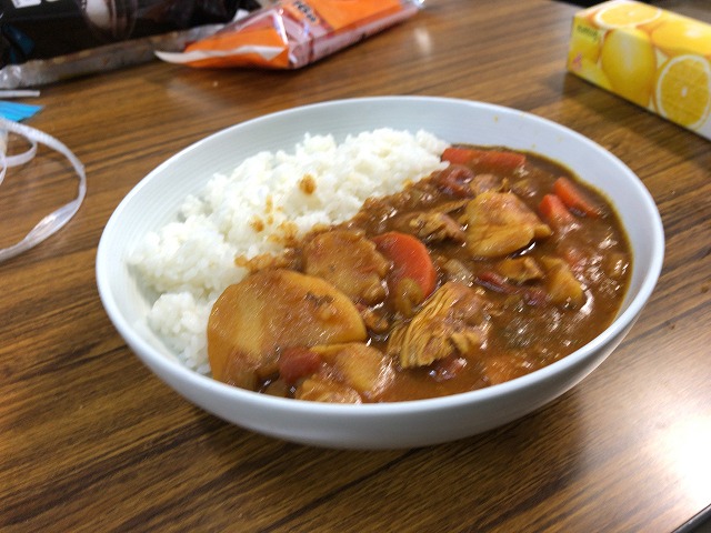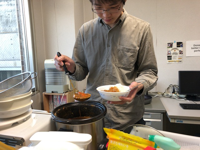 なんか忙しいと無性にガッツリとしたカレー食べたくなるよね!と助教の人。ということで、チキンカレーをみんなでいただきました。チキンは骨付きでちゃんと焼いてから。 じっくり煮込むので野菜は大きめにして焼く。トマトはつぶしたのを一缶いれて少し煮る。あとハチミツあれば少々。セロリの葉はルーを入れてひと煮たちしてから。 もっとガッツリいくときは赤ワインを入れたいところ。ごはんはかためで。 |