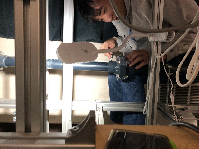 ぼちぼち10年になる回流水槽(小)のポンプをオーバーホールです。作った先輩は小柄でしたが、 今使っている2人は180 cm越えているので狭小作業はかなり大変でした。 |