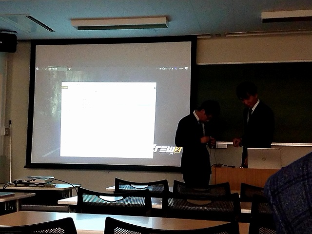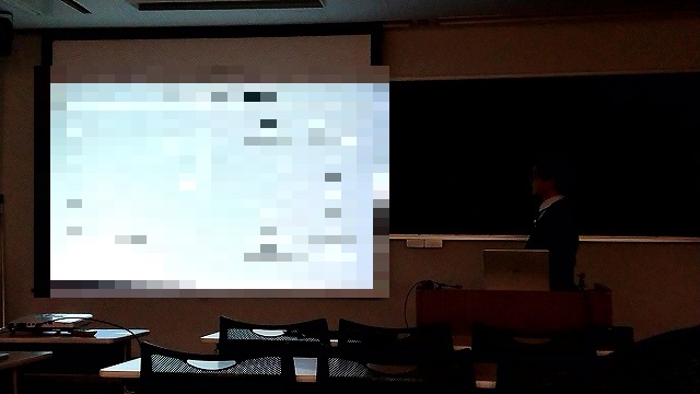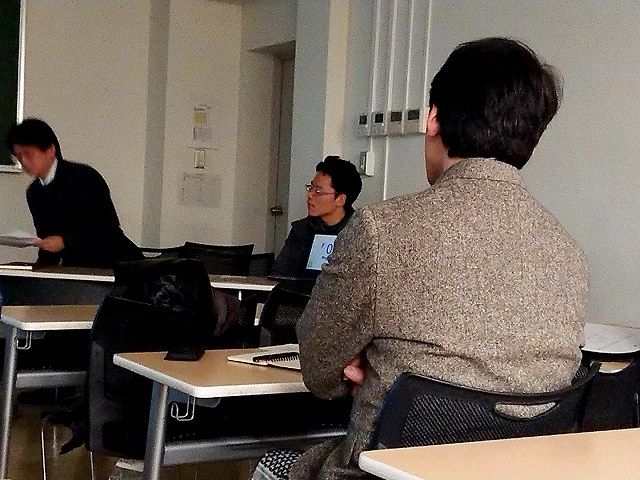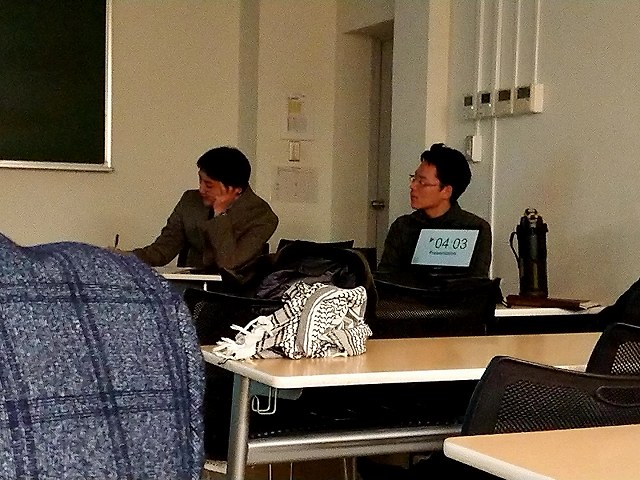 去年は4人で今年は6人。ここ数年で技術面は格段の進歩がありました。内容が高度化しているので6人分をしっかり聴くとくのはかなり大変です。今回も計測・制御系の5研究室合同です。 |