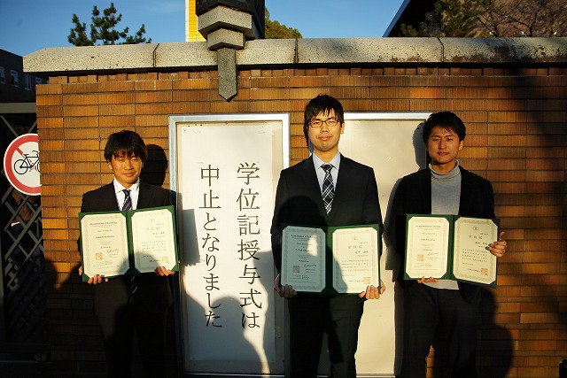 去年は修士5名,学部5名卒業でしたが,今年は修士3名,学部6名でした.今年は非常に残念なことに、