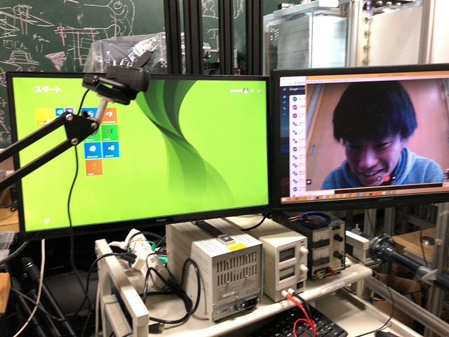 コロナでのびのびになっていた引き継ぎを終わらすために遠隔で修了されたN谷さんと准教授の人がやりとりしました。 あとは遠隔実験の検証もやりました。遠隔で准教授の人を動かすという実験。 |