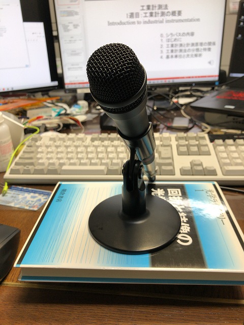 工業計測法は授業の収録動画を配信することになりました。PCのマイクは貧弱なので外付けです。収録に詳しいM1のO村さんに相談してみました。