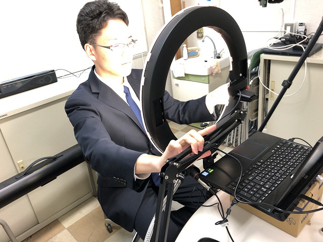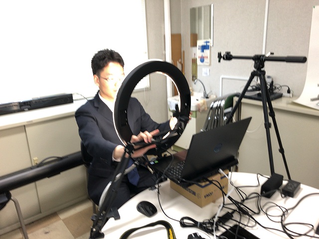 就活も大混乱ですが柔軟に対応です。准教授の人の私物(リング照明、マイク、webカメラ、アーム)で写りをよくします。 |