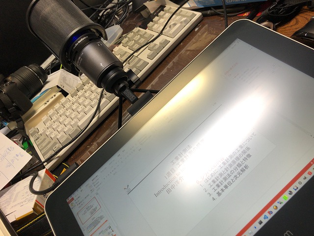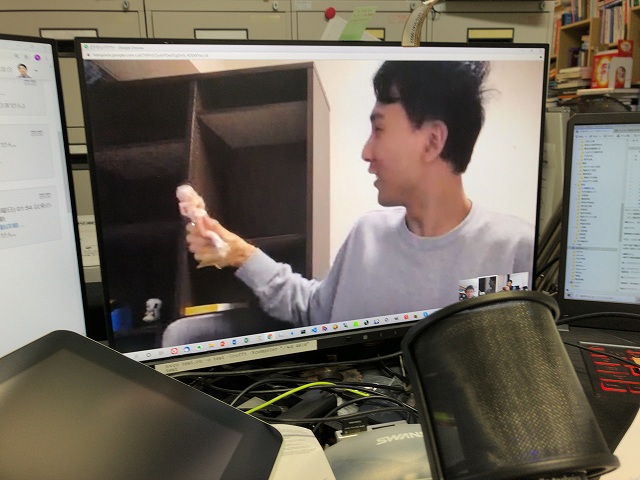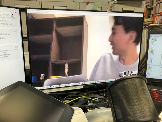 O村さんのダメ出しが出たので、マシなマイクを新調しました。音響工学やっているというのに背景雑音乗っているのはダメやろうということです。着々と工事も進んでいます。 オンライン打ち合わせもネタに答えたり、自慢のプリンタ紹介など余裕出来てきました。状況への順応がみんな速いです。 |