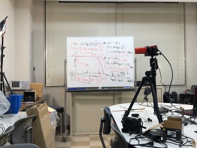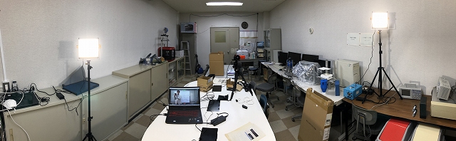 いつも工学実験や打ち合わせで使っているFの部屋は収録スタジオになりました。コロナ対応でコツコツと準備してひとまず完成です。