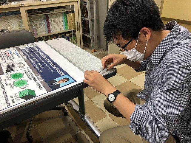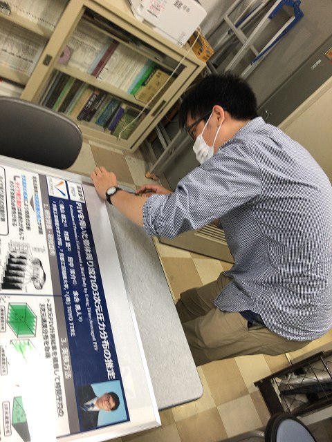 先日の受賞からコロナで4月から5月いっぱいまで登校できずでポスター掲示がそのままでした。 少しずつ研究室の日常を取り戻しています。フレームの面出しはまえからかなりうるさいです。 |