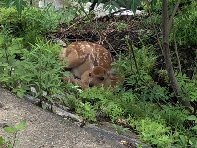子鹿がおそらく夜までジッと隠れてる様子 | ||