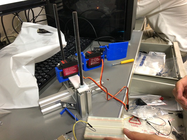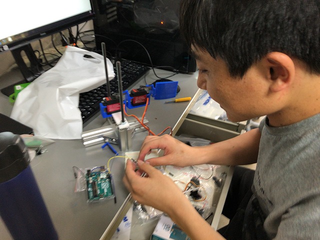 B4K野さんが取り組んでいる魚ロボットの尾びれが動くようになりました。3Dプリンタで構造体は作っています。