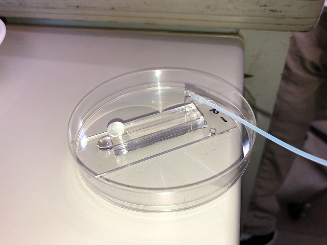 外岡先生に協力頂いたマイクロチャネルのサンプルが上がってきました。どんな感じに撮れるのか実験です。