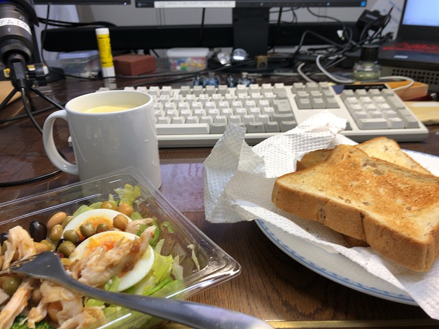 朝食とりながら参加 |