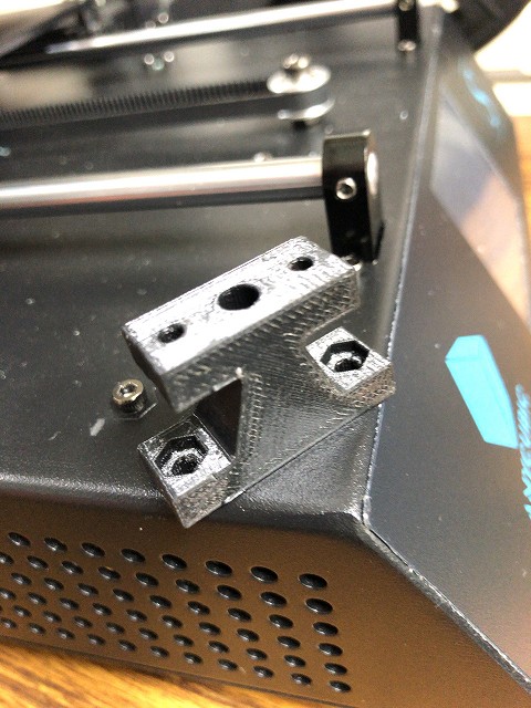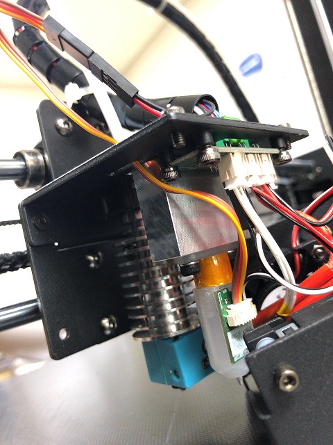 先日の改造から2ヶ月ほど運用すると不具合発生。3Dプリンタで出力したPLAのスペーサが熱で歪んでいって、 せっかくの水平だし機能がダメダメになっていました。工場で加工したジュラルミンプレートに置き換えです。 |