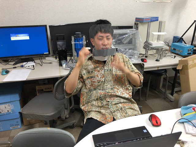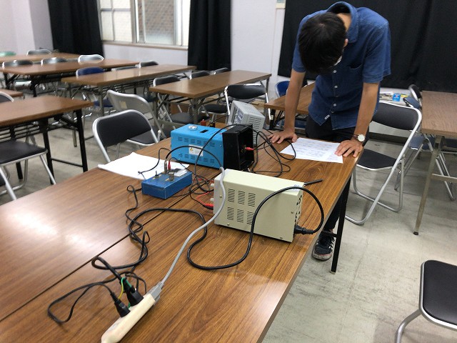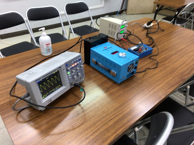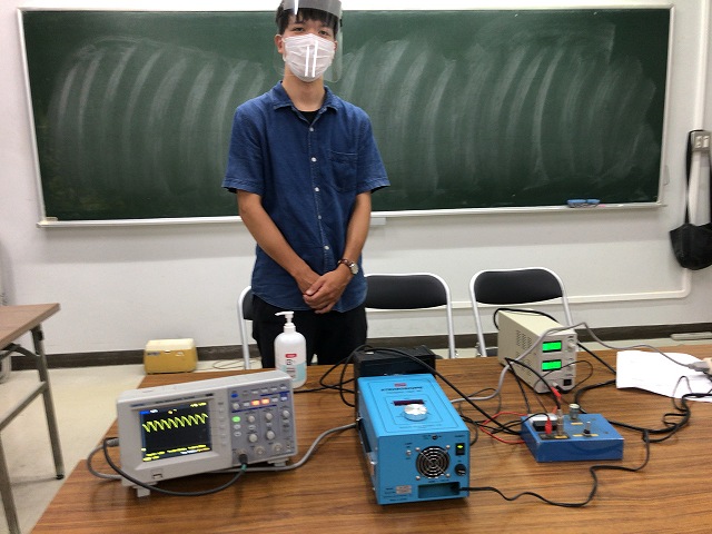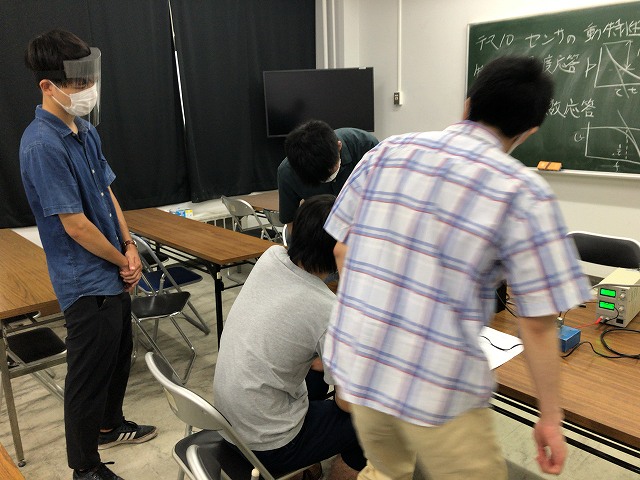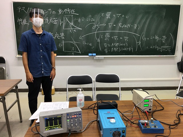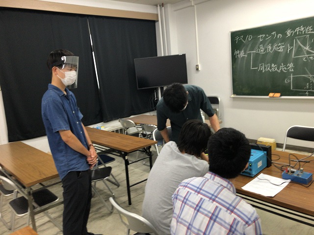 工学実験のスクーリングの日です。オンラインで実験をやったのですが、実際にモノを見たいというご要望に対応する日。フル装備で対応します。 |