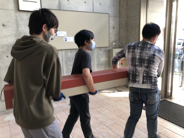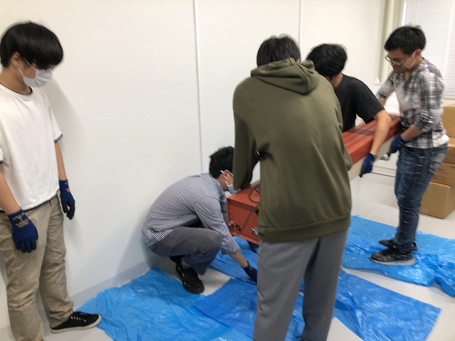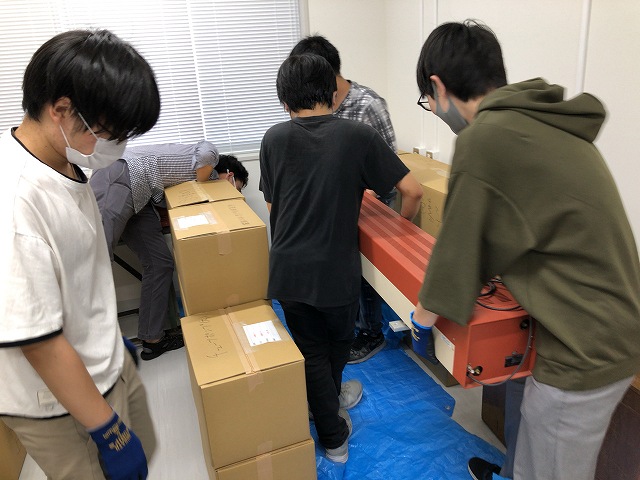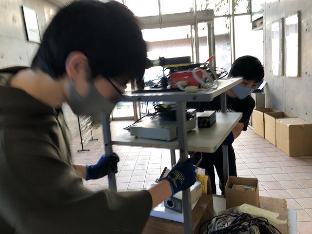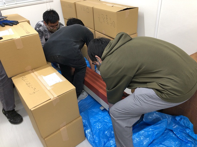 2月末に創造連携センターに仮置きしていた段ボールや精密機材を移動です。中旬の引っ越しは業者の方がメインで、 除震台、机、棚など重量物を運んで貰います。同じ日にやるとわちゃわちゃになるので、晴れて涼しい今日この日にやろう!!と准教授の人。梱包無しなので1時間ちょうどくらいで終わりました。 |