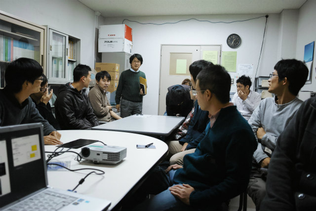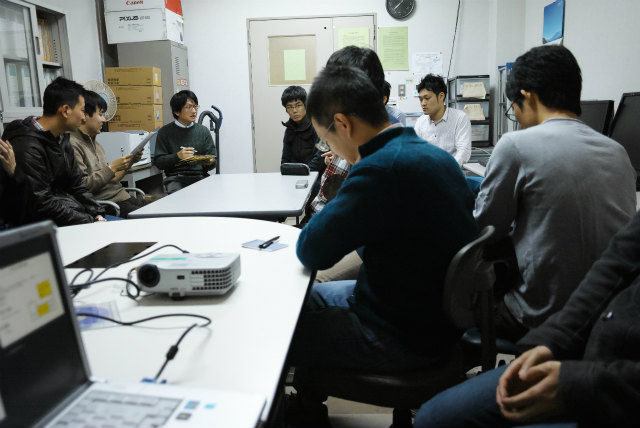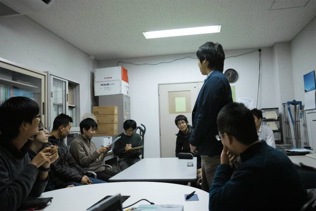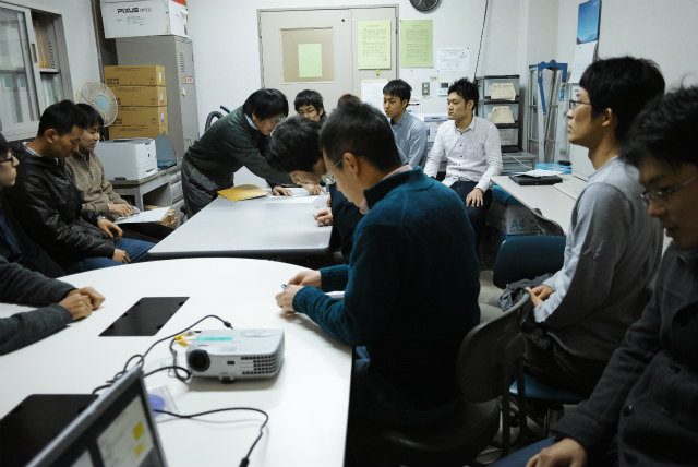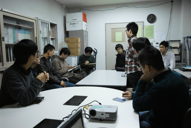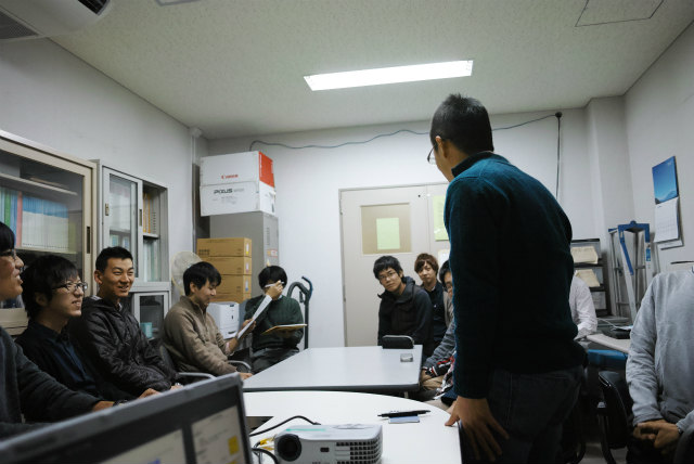 4月に、4回生が6名配属しました。そして、今年から3回生がこの時期から6名配属することになり、いっきに大所帯になりました。春までテーマは決めずに、みっちりと課題をやっていきます。テーマ選択時には、センサ計測、PIV計測、ホログラフィ計測の基礎的なことが出来るようになります(助教の人談)。 |