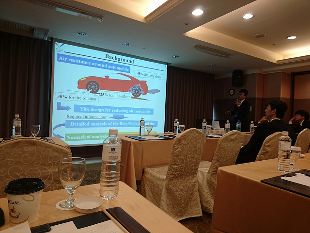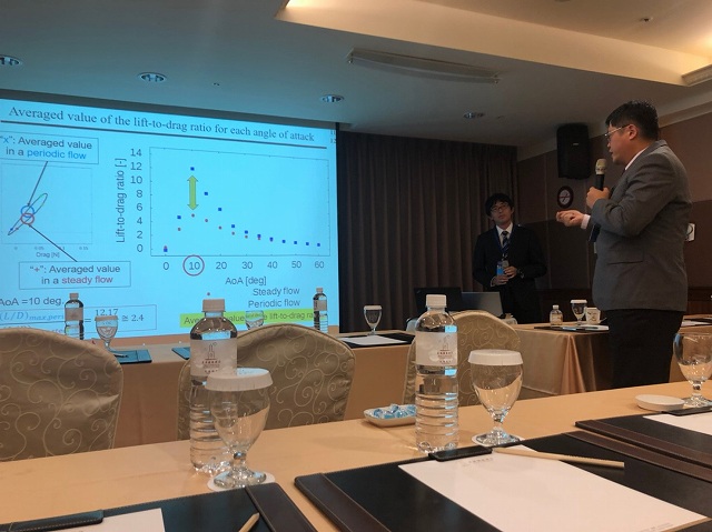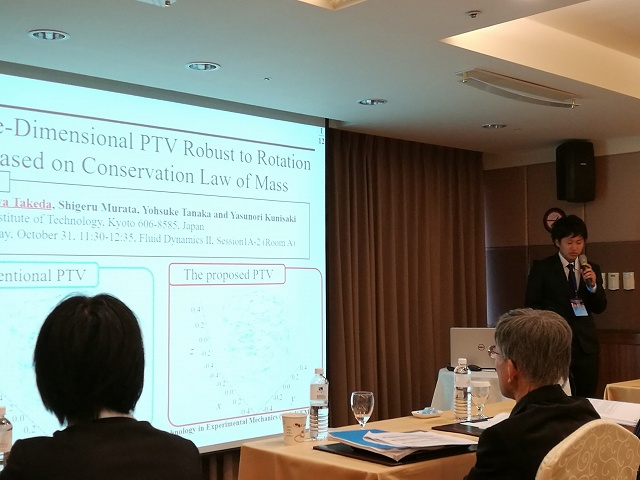 13th ISEM'18で,3人とも流体計測の研究について,M1のT田くんが「Three-Dimensional PTV Robust to Rotation Based on Conservation Law of Mass」,M2のE藤くんが「Experimental Analysis of the Effect of Tread Grooves on a Tire inside a Tire House」,M2のS田くんが「Lift and Drag of a NACA0012 Airfoil in a Periodic Flow for Changing Angle of Attack」という題目で発表しました.S田くんは去年に引き続いて2回目の発表です.写真は3人それぞれで撮りました.どの写真がだれが撮ったのか考えながらご覧ください(170枚にコメント付けるのがしんどくなった訳ではありません.ジャケ写みたいな構図が好きなのはわかりました). |