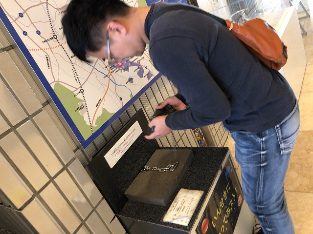 助教の人のバッグにコスモ星丸ステッカー貼付 |