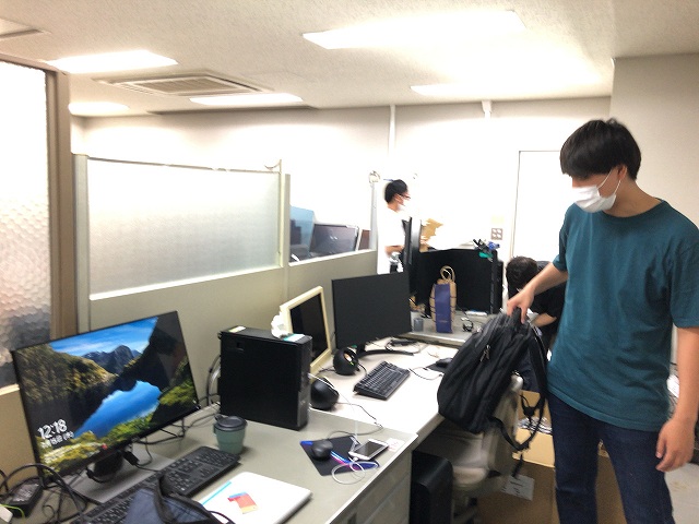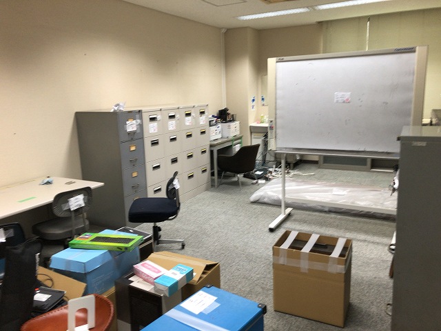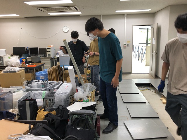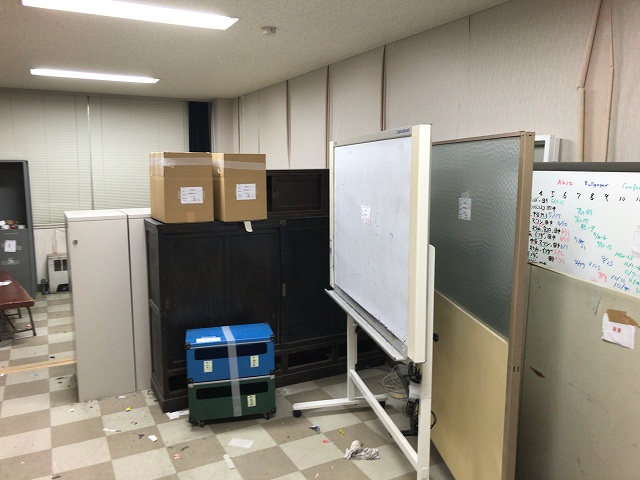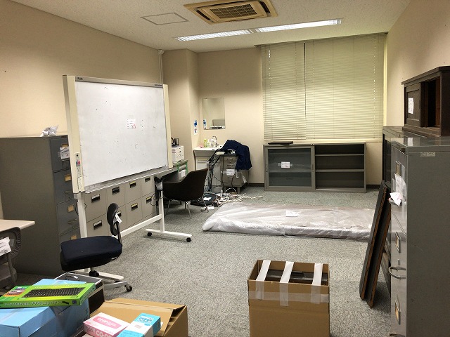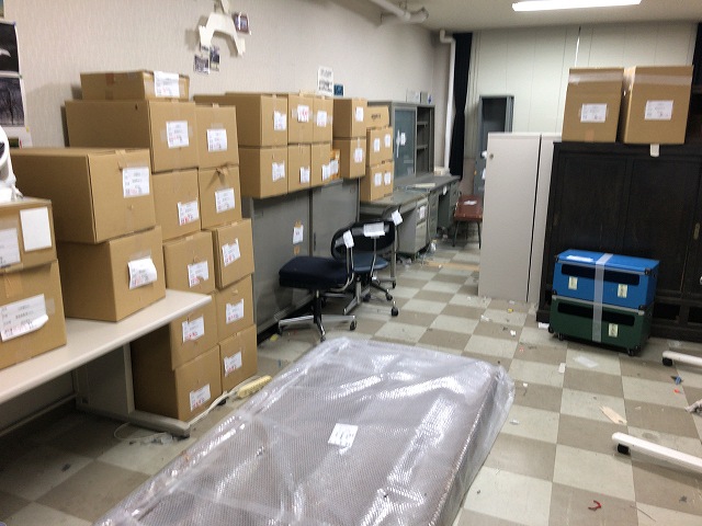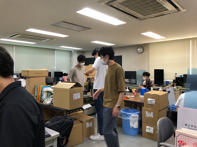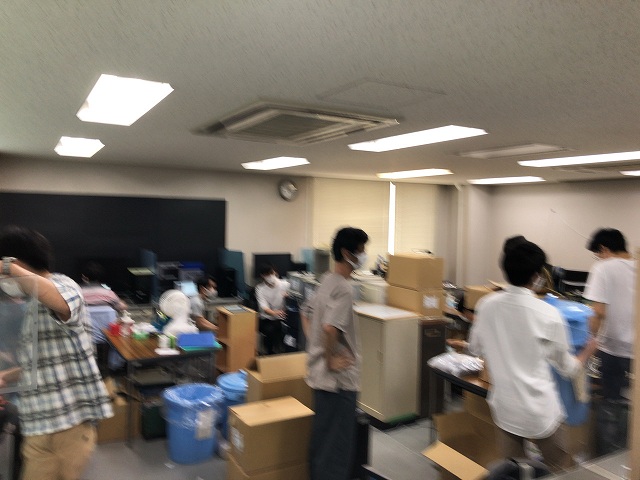昨日から引き続き引っ越しです。今日は准教授の人の501Dと学部部屋の501Eの引っ越しです。朝は少し小雨でしたが、おおむね晴れと天候はまずまずでした。やっぱりプロはすごいと実感。 学生と教員がこれで移動完了。あとはFの部屋と実験室がまだあります。 |