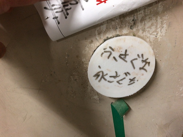 内装も粗大ごみもあらかた撤去されました。いよいよ改修工事が始まりますが、忘れてはいけない箇所が1つ。回流水槽の排水孔の確保です。2008年の耐震補強工事で間違ってあけられた孔を利用しています。今度の工事で間違って埋まらないように、B4ヒロキによる3Dプリンタで作った特製封止プラグの設置です。 |
