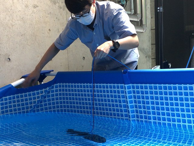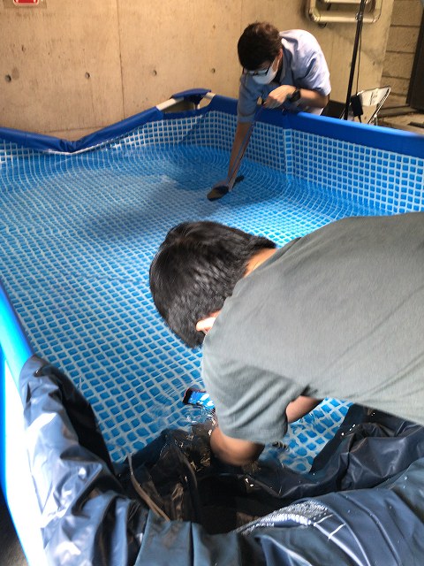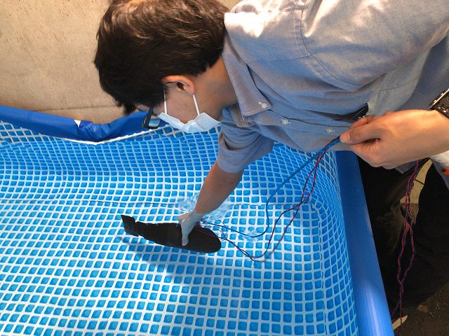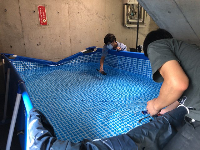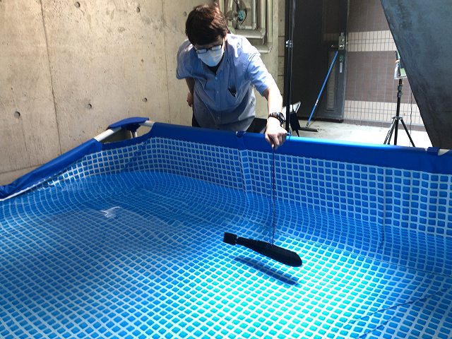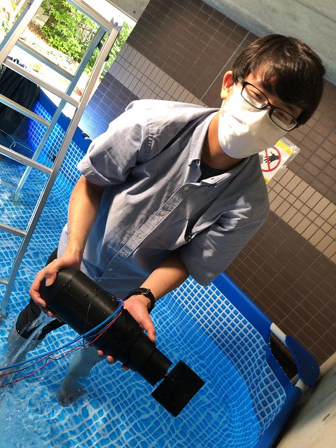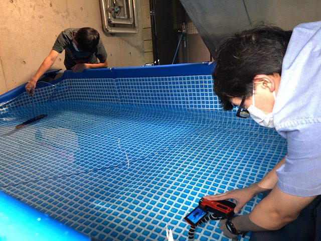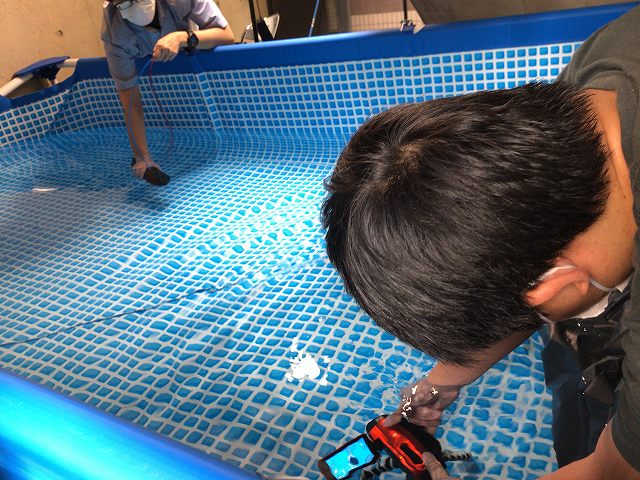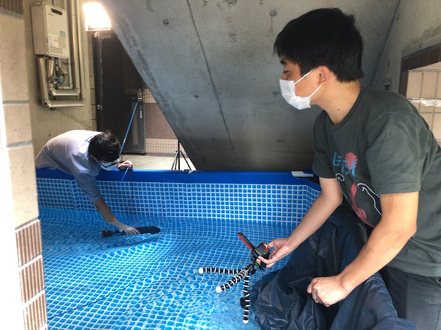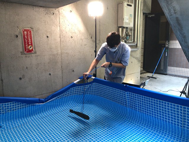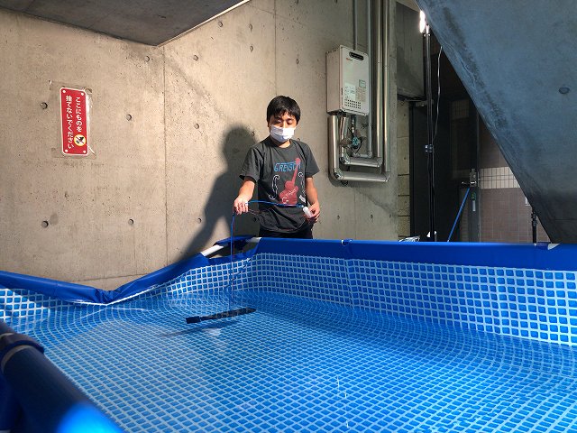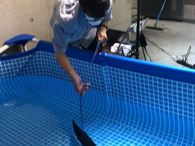 自立型の魚型ロボットに向けて有線で泳がせてみました。各部動作の確認と水中撮影の練習を兼ねて水遊びに適した日に実施です。 画角、照明などこだわりだすと自主映画っぽくなってきて楽しかった模様。 |