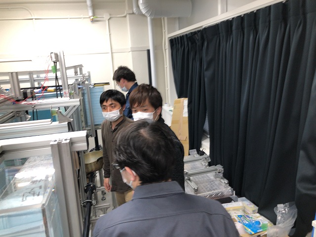 17号館から10号館へ回流水槽の移設行いました。今日は漏水チェックです。装置を1年に2回も動かすのは負担以外にないですね。
