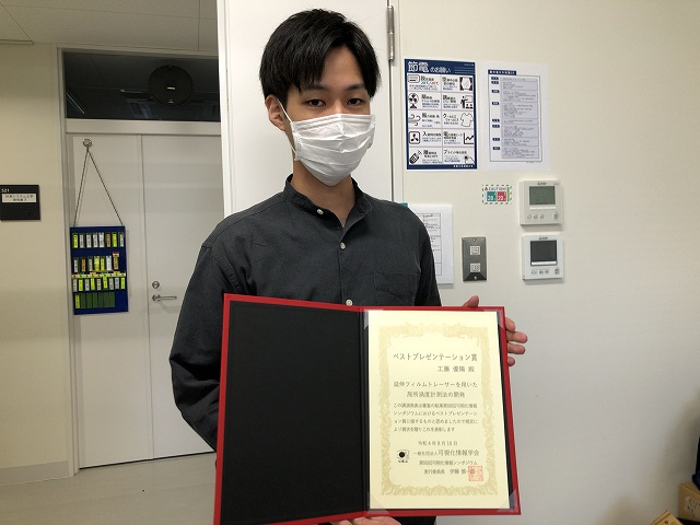 でM2工藤優陽さんが光計測の研究:「延伸フィルムトレーサーを用いた局所渦度計測法の開発」で