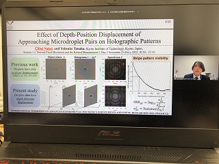 オンライン開催のIWAEM'22でM1N井さんが光計測の研究「Effect of Depth-Position Displacement of Approaching Microdroplet Pairs on Holographic Patterns」、M1M井さんが音響計測の研究「Influence of Input Sound Pressure Amplitudes on the SPL at the Resonance Frequency of Thermoacoustic Device with and without a Temperature Gradient」をそれぞれ発表しました。准教授の人はThermal/Fluid Mechanics and the Related Measurement 3の座長を担当です。 |