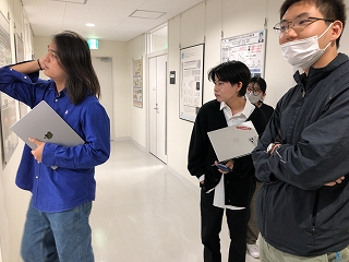 プレゼン受賞多数の2人がO本先生のプレゼンを観る |