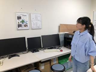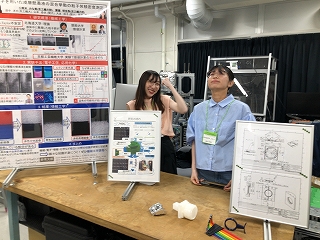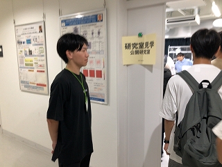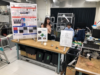 前日の最終調整からいよいよ本番。M1O本さんとM1S藤さんはポスター説明、M1I山さんは参加者の誘導担当です。 |