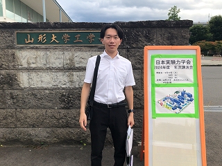 昨年の和歌山から日本実験力学会 2024年度年次講演会は米沢市開催です。18日に熱音響計測の研究でM1S和さんが「自己相似型導波管が熱音響性能に与える影響」、光計測の研究でD1N井さんが「位相回復ホログラフィによる3次元水滴軌跡の可視化」、M1I山さんが「位相回復ホログラフィにおける波長シフト再生による粒子像伸びの低減」の口頭発表をしました。光学的手法の新展開とその応用(2) を准教授の人が座長を担当しました。 19日に流体計測の研究でM1S藤さんが「周期流中における振動翼翼端渦のステレオ PIV 法の位相平均回数が精度に与える影響」、M1O本さんが「蛍光成層懸濁液の定量的評価における紫外線照射条件の改善」を発表しました。流体の可視化と計測(1)を准教授の人が座長を担当しました。遠隔地ということもあり、今回は全員前泊で最終日まで参加しました。 |