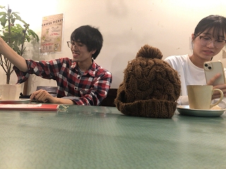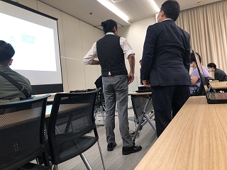 M1S藤さんが准教授の人と同じ部屋で発表中 |