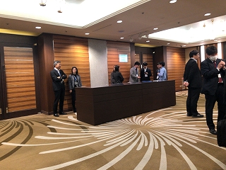後ろで記者会見準備などバタバタうるさくなり退散 | ||