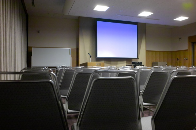 プロジェクタチェック完了、発表会場で待機中 | ||
