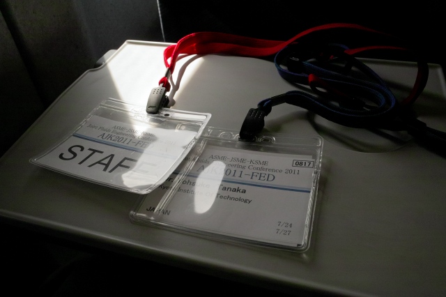 助教の人がASME-JSME-KSME Joint Fluids Engineering Conference 2011で"Three-dimensional measurement of interaction between a circular cylinder and surrounding flow by Digital Holographic Particle Tracking Velocimetry"を発表しました。加えて、Local Organizing Committeeとして学会運営をお手伝いしました。助教の人が、国際会議の運営ってなかなか大変だと実感したとかしないとか。いつも参加だけですもんね。 |