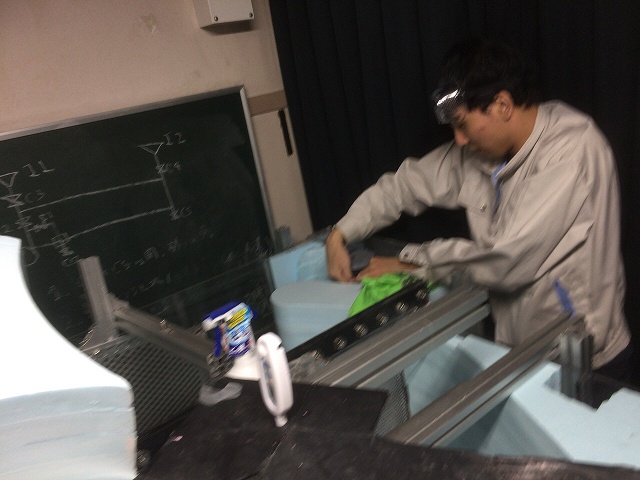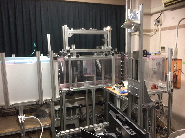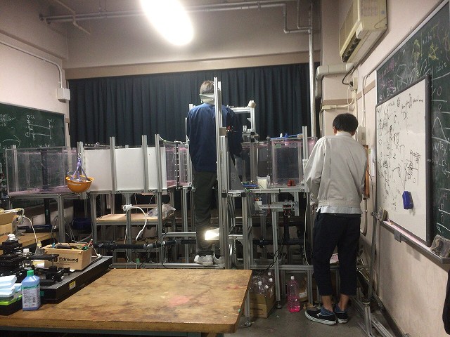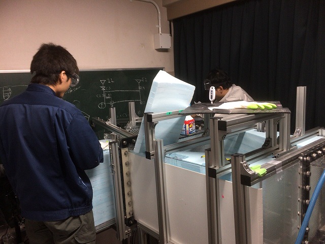 去年と同様に、卒論前に回流水槽を清掃です。先日のレビューを反映して、 揚抗計とステレオシステムの干渉がなくなって、作業性がすごく向上しました。掃除も簡易にということでしたが、結局は全部ばらしています。B4のS永さんにとって構造の理解になりました。 めんどくさいですが、式年遷宮のように技術伝承としてよいのかもしれません。 |