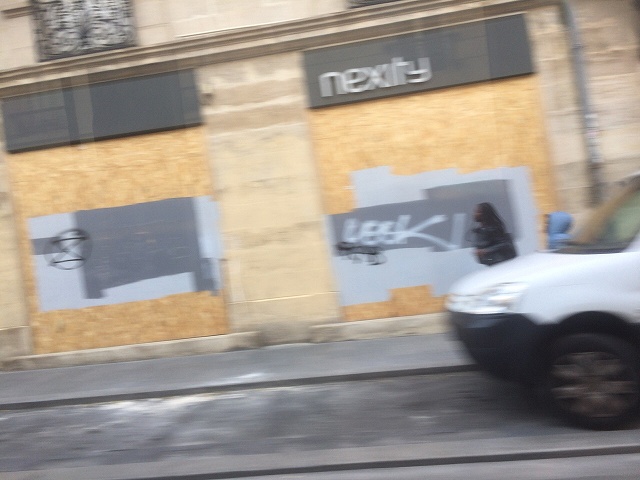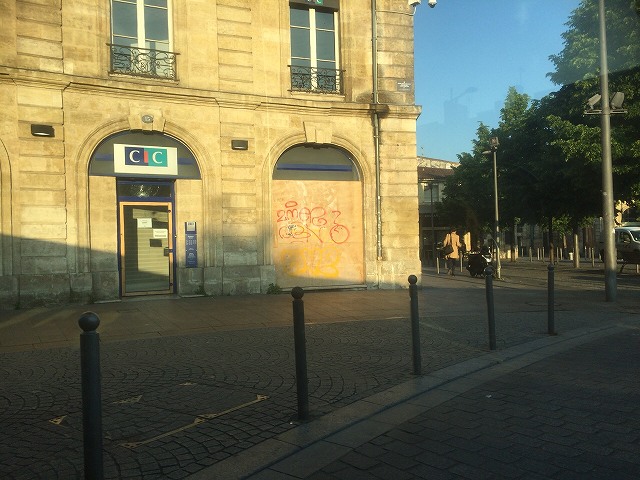 銀行,携帯ショップなど合板でショーウィンドウをカバーされてました |