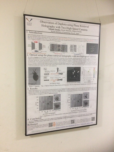 助教の人がDigital Holography and 3-D Imagingに, 「Observation of Daphnia using Phase Retrieval Holography with Two High-Speed Cameras」という題目で,にポスター発表にいきました.毎週土曜日に主要都市で イエローベスト運動開催ということで,大丈夫か?という状況でしたが,会期中は大丈夫でした. |