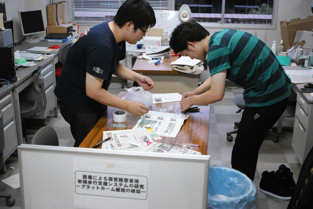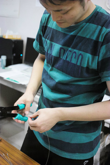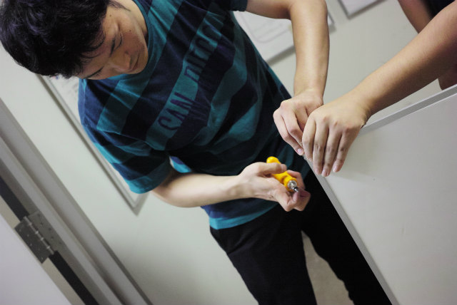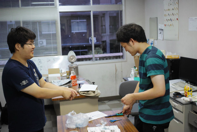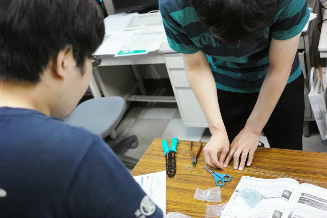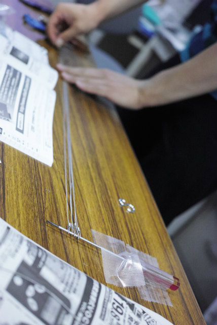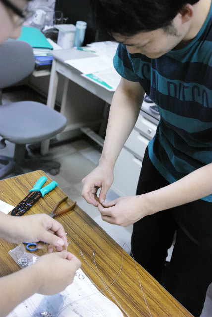ワイヤー持つ人(A井くん)、ポスター持つ人(ムー君) | ||
