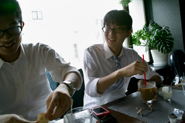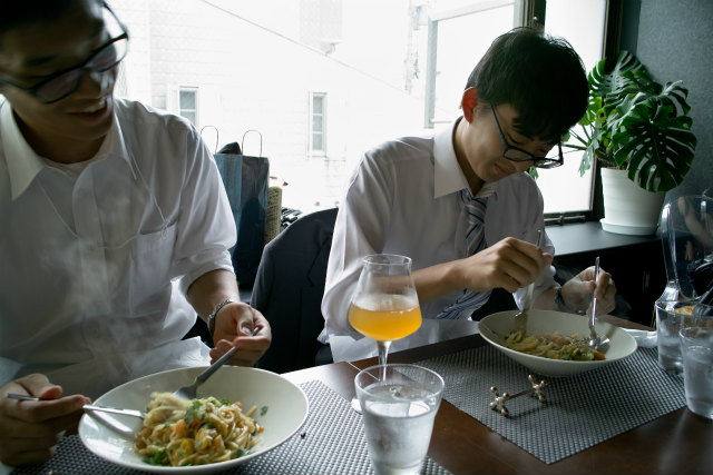 S田くんカメラ,プレゼン準備のY西くんとご飯のS田くん |