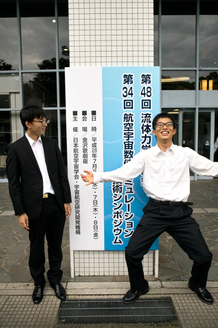 第48回流体力学講演会でM2のY西くんが流体計測の研究で「周期流中におけるNACA0012まわりの渦構造に関する研究」という題目で発表しました.今後のために同じテーマのB4のS田くんも見学で参加です.二人とも7日からの参加. |