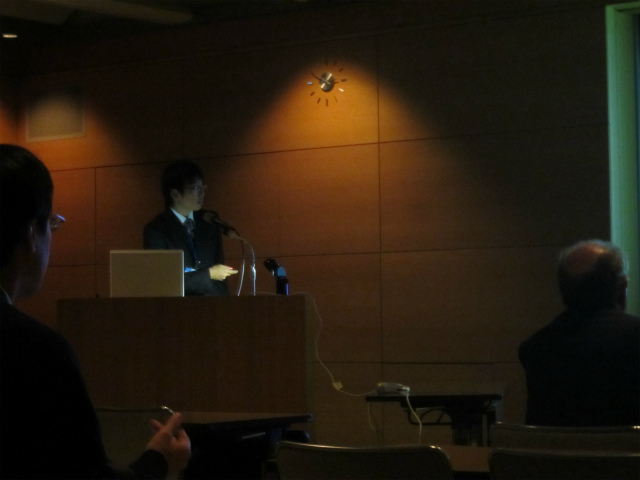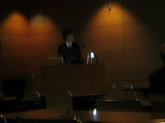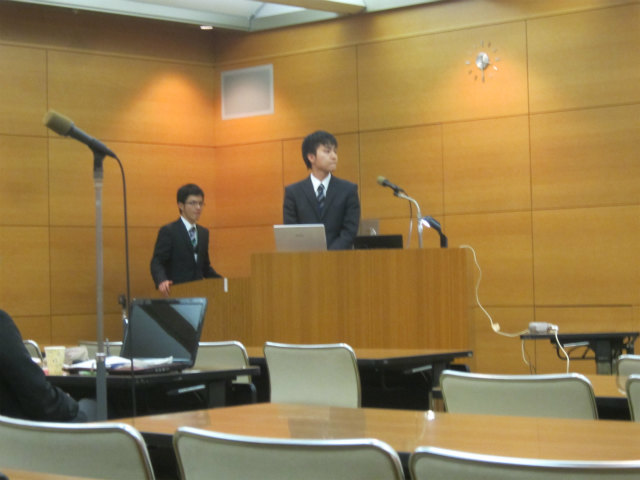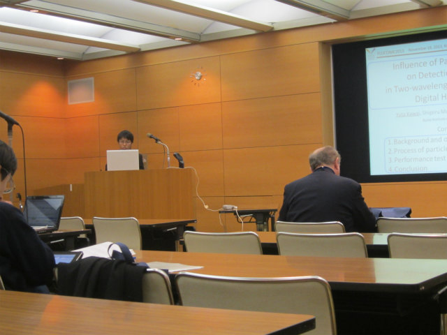 K井くんは"Influence of Particle Diameter on Detection Accuracy in Two-wavelength Reconstruction Digital Holography"、最後にN島くんは"PTV Measurement for Deflection FieldofaCentrifugal PumpBlade"、訂正"PTV Measurement for Deflection Field of a Centrifugal Pump Blade"を発表しました。村田先生も助教の人も居ないので、質疑応答は自力でなんとかしました(助教の人は居てもフォローはしない、ムー君談)。 |
