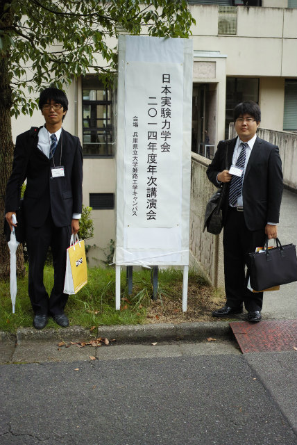 日本実験力学会 2014年度年次講演会でムー君が「二重円筒内における多孔質材の表面積が吸音性能に与える影響」とShogoが「変形時のタイヤ空洞共鳴音の 2 次モードの測定」を発表しました。姫路は2年前の可視化以来(1、2)。今回来てみると工事はだいぶ進んでいました。 |