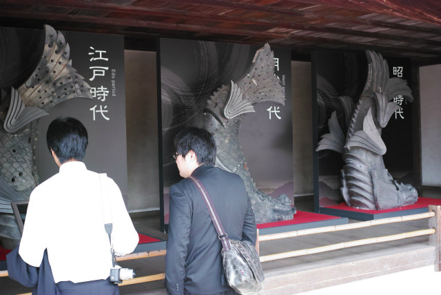 あぐらかいてる人達が屋根からこっち見てる! |