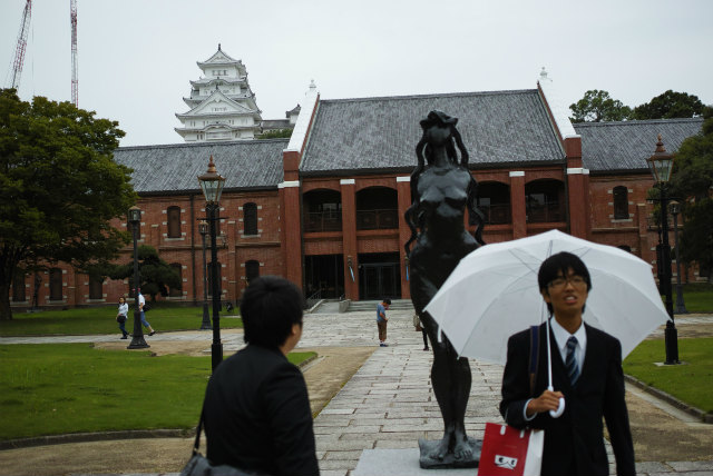 姫路城は山で見えない |