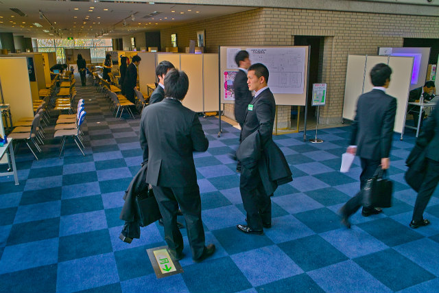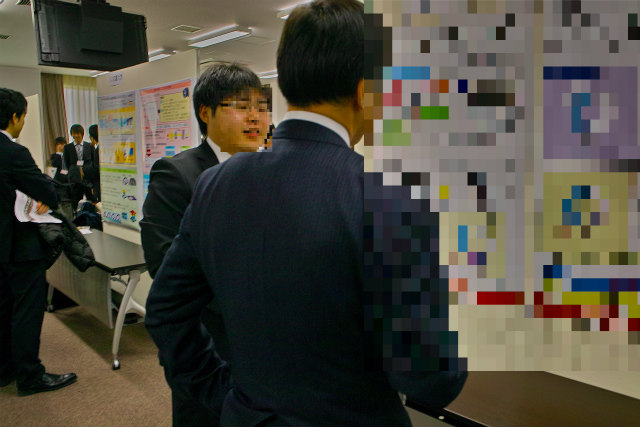 この時期は機械学会関西支部主催のMECHAVOCATION。学会、企業、学生の三方良しが成り立ちます。2年前にM脇くんとK野くんがポスターで参加していたのですが記録無しでした。今年はM1のN村くんがポスタ-発表で参加。企業と学生の交流会で、午前はポスター発表で、午後は企業の合同説明会と濃い一日になります。 |