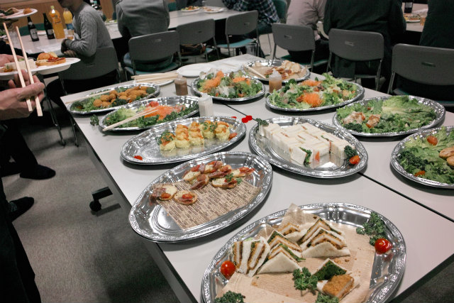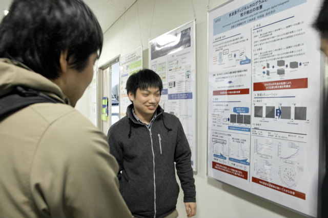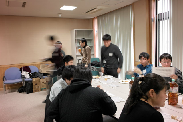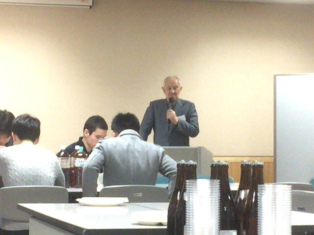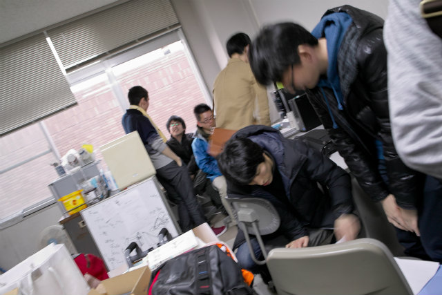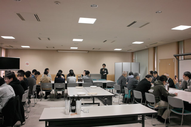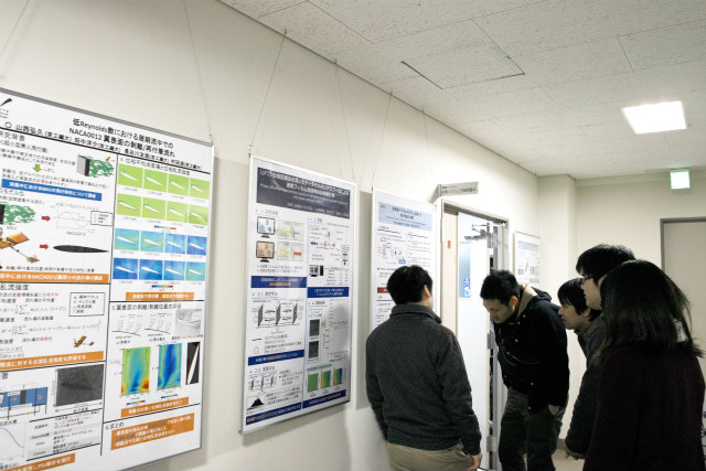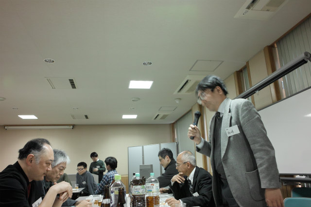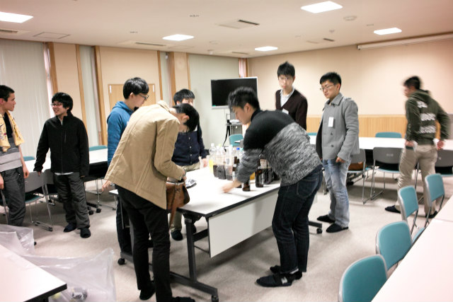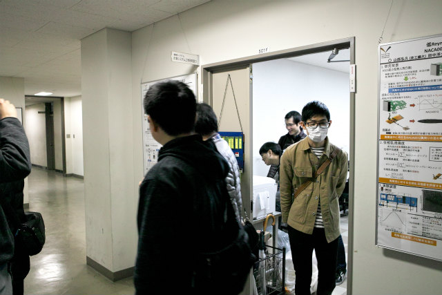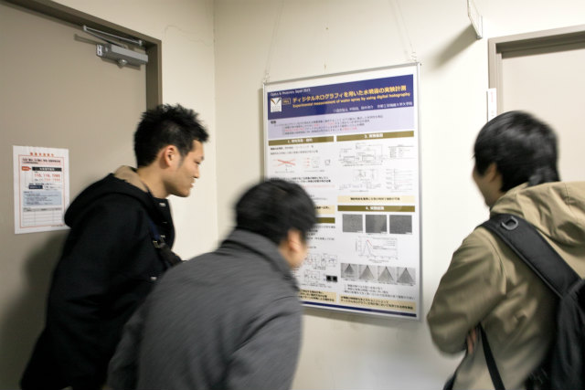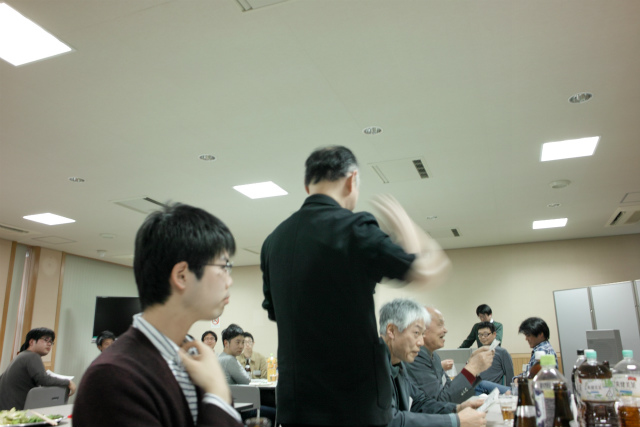 去年は43人参加で,今年は36人参加でした.会場を工繊会館に移して開催です.ワイヤレスマイクで近況報告も話しやすい状況になり,ますます独演会に磨きが掛かりました.OB,現役よらずに話し上手の人が多いです.会の後はキャンパス周辺ツアーで,建設中のデザインファクトリーなどを見た後は研究室へ移動します.廊下のポスターを充実したので,OBからいろいろと質問受けていました. |