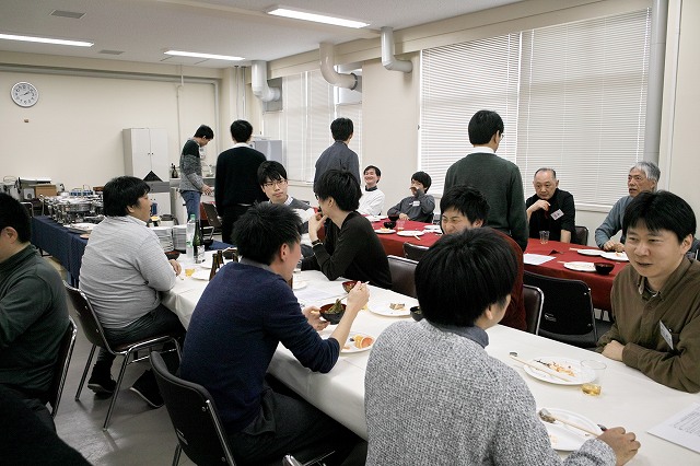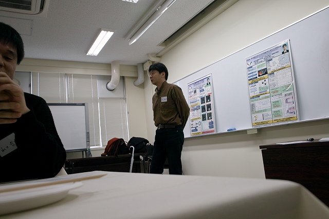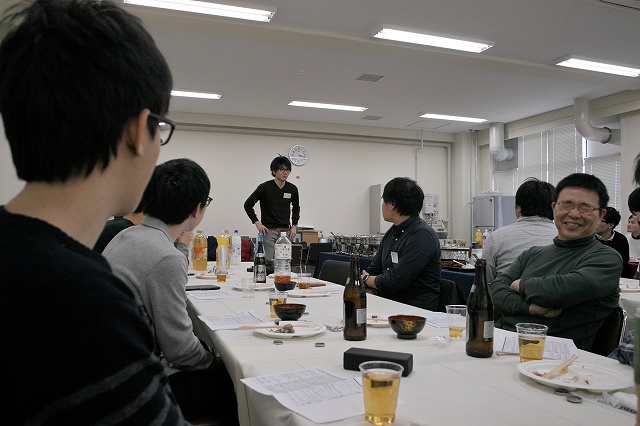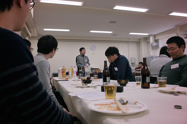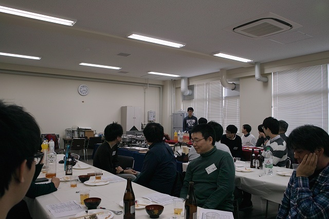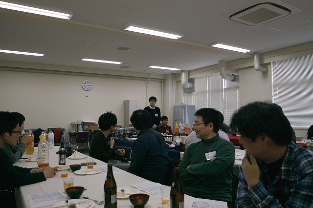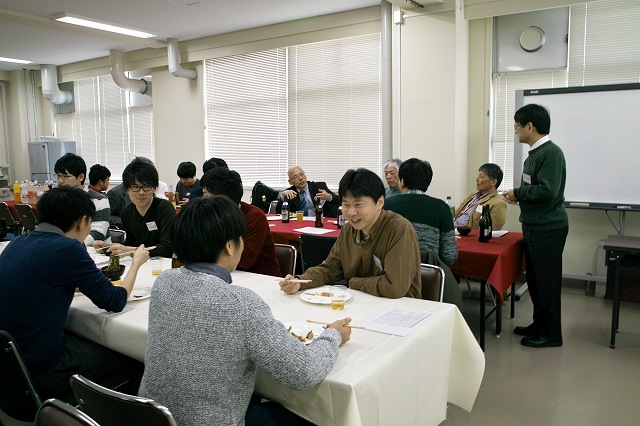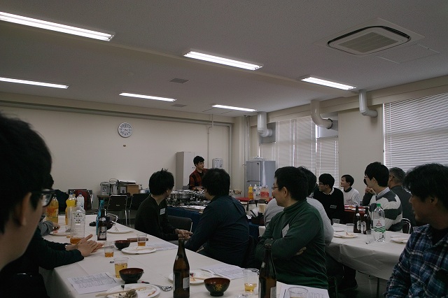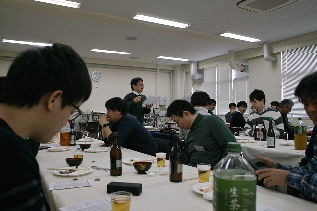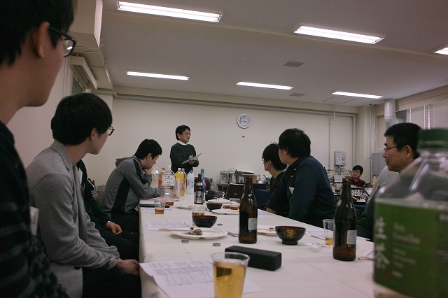 去年は27人で今年は28人と微増。来年は村田先生還暦祝いを併せて行う予定なので、もっと集めていきます(助教の人)、とのこと。 懐かしいなぁというOB会の側面もありますが、会の前に技術相談をしたり、M1は先日のポスターを発表したりと、 幅広い交流になっています。30年以上続いているため、近頃OBOBもおじいさん、おとうさん・おかあさん、こども世代と3世代になってきています。計測研という共通点で、上下世代間の交流ができるため、なかなか貴重な機会です。 |