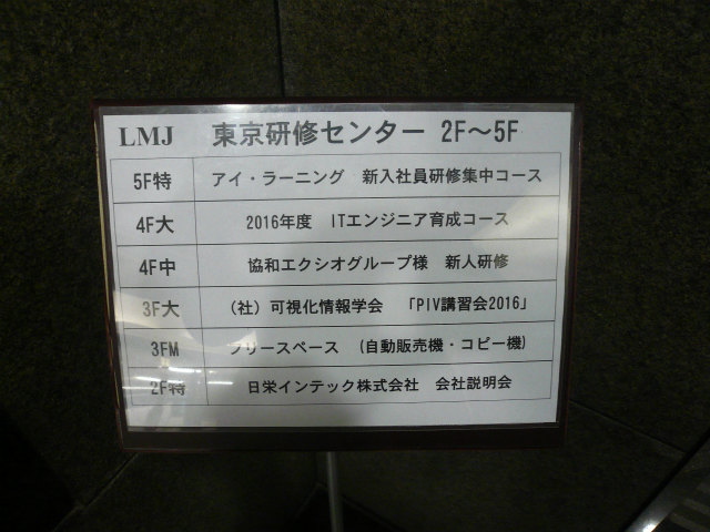 去年に引き続いて,B4のS田くんが第22回 可視化フロンティア「PIV講習会2016(東京)」を受講しました.M2のY西くんが参加した17回は7月でしたが,今年は5月と早めです.しかし,すでに早期配属で3回11月から始めた演習ではPIVのプログラミングが終わっているので問題なし.実験は先週,Y西くん立ち会いで行って処理もしています.ある程度やってから受講した方が良いですね. |