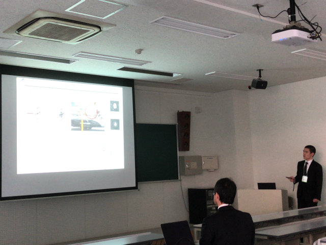 M1のK保西くんが,PSFVIP-11で光計測の研究「OBSERVATION OF BUBBLES USING PHASE RETRIEVAL HOLOGRAPHY」を発表しました. 準備は10月から,じっくりと時間をかけました.前の週に,Fの部屋にこもってプレゼン練習をやっていたのは,鬼気迫るものがありました(切羽詰まっていた?).でも,真っ暗な部屋の隅でやるのはコワイからやめてね. |