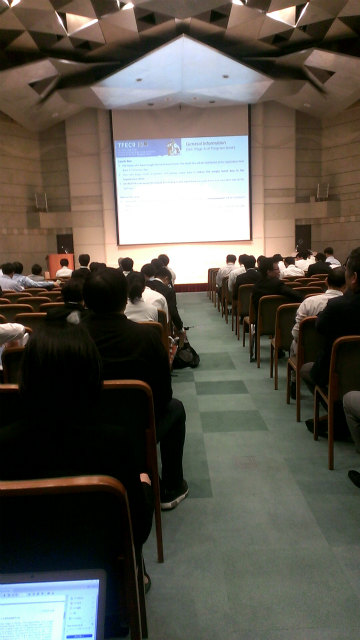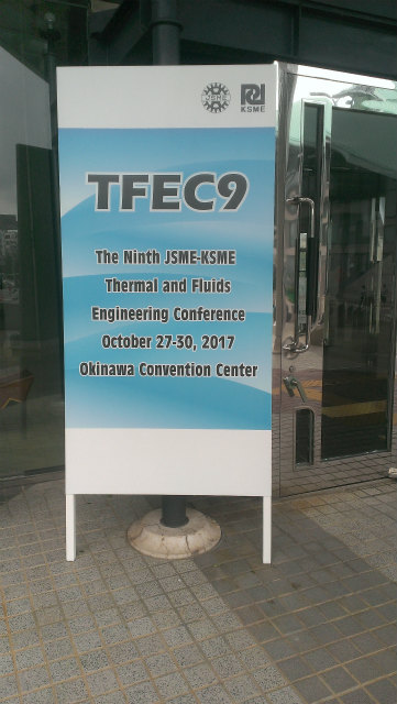 TFEC9にて,M2のHくんが光計測の研究で,「Measurement of Particle Movement in 3D Flows Using Multi-Wavelength Digital Holograms」を口頭発表しました.先週の松江に引き続いて2週連続台風が来て,ついに会期と発表時間が短くなりました.10月末なのにねぇ... |