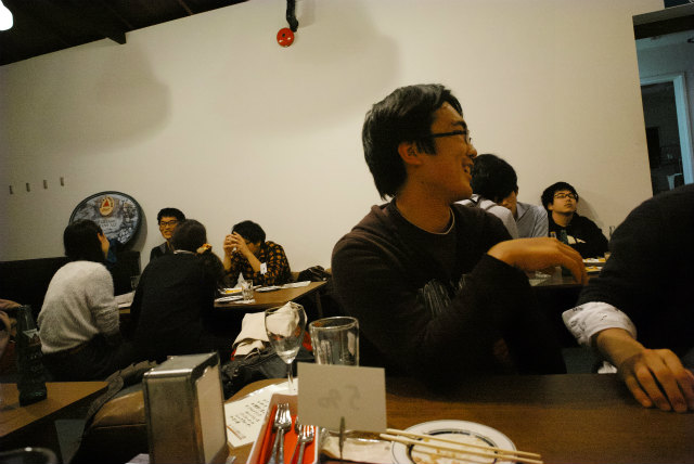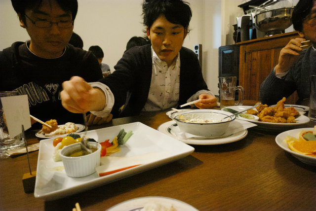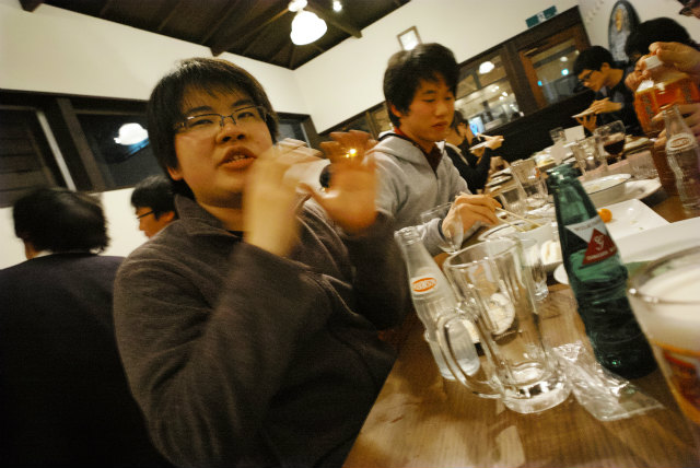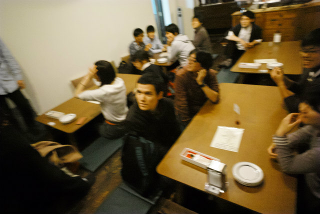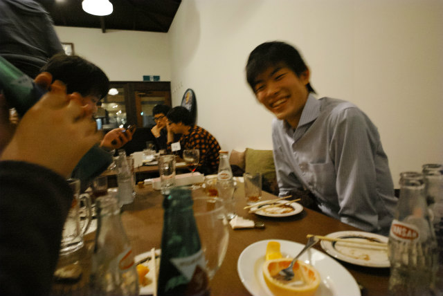 去年は新歓と一緒にやりましたが,今年は新歓と忘年会は別です.教員も含めて18名というのは近年まれに見る人数です.幹事のY岡くんが頑張っておしゃれな北山のお店にしてくれました.いつものようにゆるく飲んで食べました. |